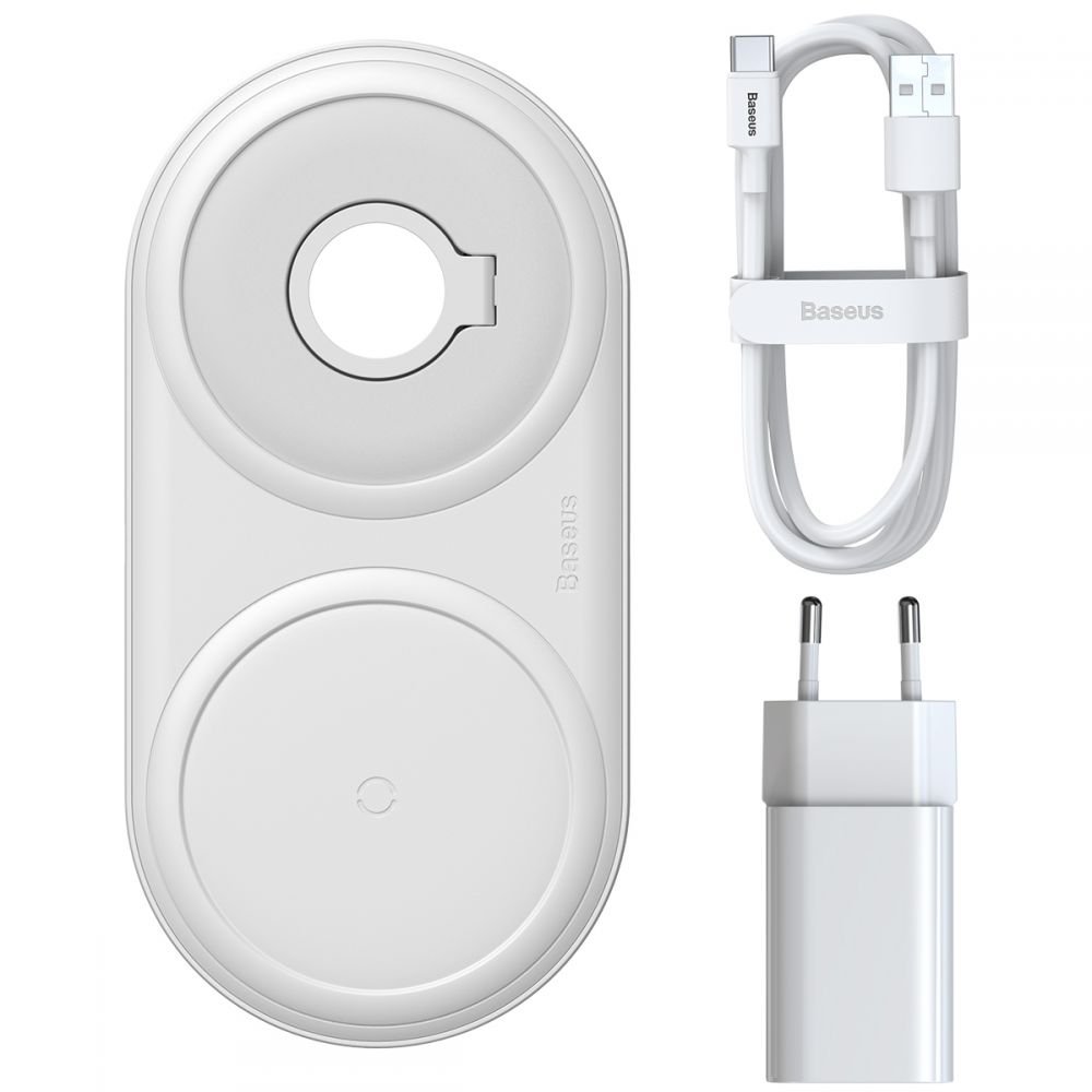 Зарядний пристрій Baseus Planet 2in1 - це практичний пристрій, який дозволяє швидко та безпечно поновлювати енергію у своєму смартфоні та Apple Watch. Дизайн аксесуара складається з двох елементів - це зарядна котушка та підставка для оригінального зарядного пристрою Apple Watch. Перший елемент дозволяє здійснювати бездротову зарядку смартфонів за технологією Qi. Другий - це практична кабельна котушка, яка використовується для утримання зарядного пристрою AppleWatch.