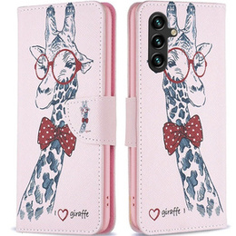 Откидной чехол для Samsung Galaxy A25 5G, Wallet, giraffe, розовый + 9H стекло