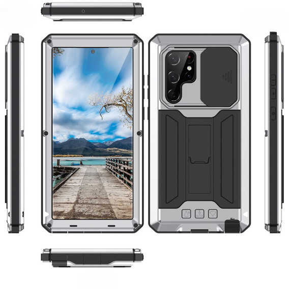Бронированный чехол для Samsung Galaxy S22 Ultra, R-JUST CamShield Slide, серебряный