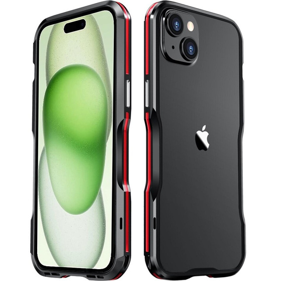 Чехол LUPHIE для iPhone 15, Armor Bumper, чёрный / красный - это чехол-бампер из высококачественного алюминия, который идеально облегает телефон и при этом очень тонкий. Приподнятые края вокруг телефона хорошо защищают его при установке на плоскую поверхность. Верхняя и нижняя части каркаса соединены винтами, благодаря чему бампер идеально прилегает к телефону. Амортизирующий буфер внутри рамки может защитить телефон от поломки. Конструкция цельнометаллическая, легкая и тонкая. Точные вырезы и отверстия обеспечивают легкий доступ ко всем функциям, а при закрытых боковых кнопках смартфон устойчив к загрязнениям.