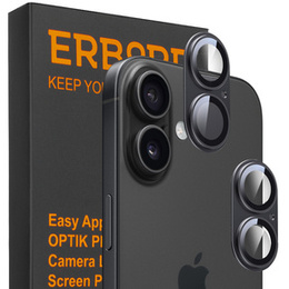2x закаленное стекло ERBORD OPTIK Pro для камеры iPhone 16 / 16 Plus, чёрный