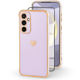 Чехол для Samsung Galaxy S24, Electro heart, фиолетовый + полное клеевое керамическое стекло
